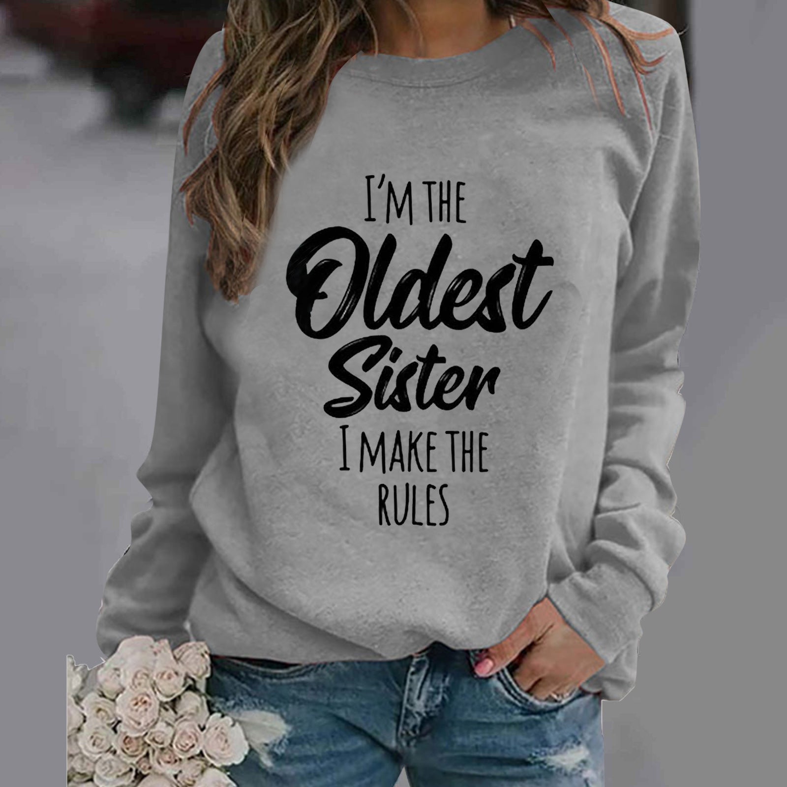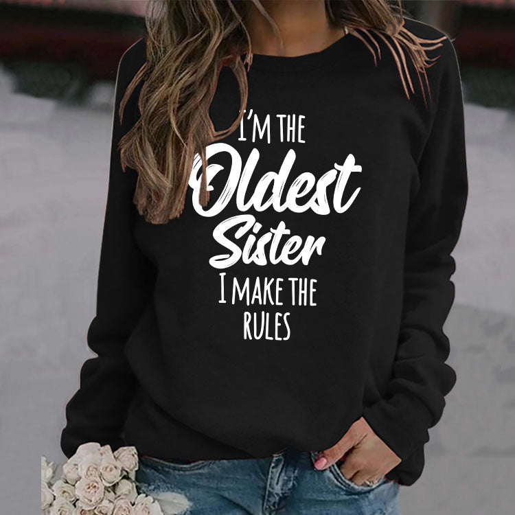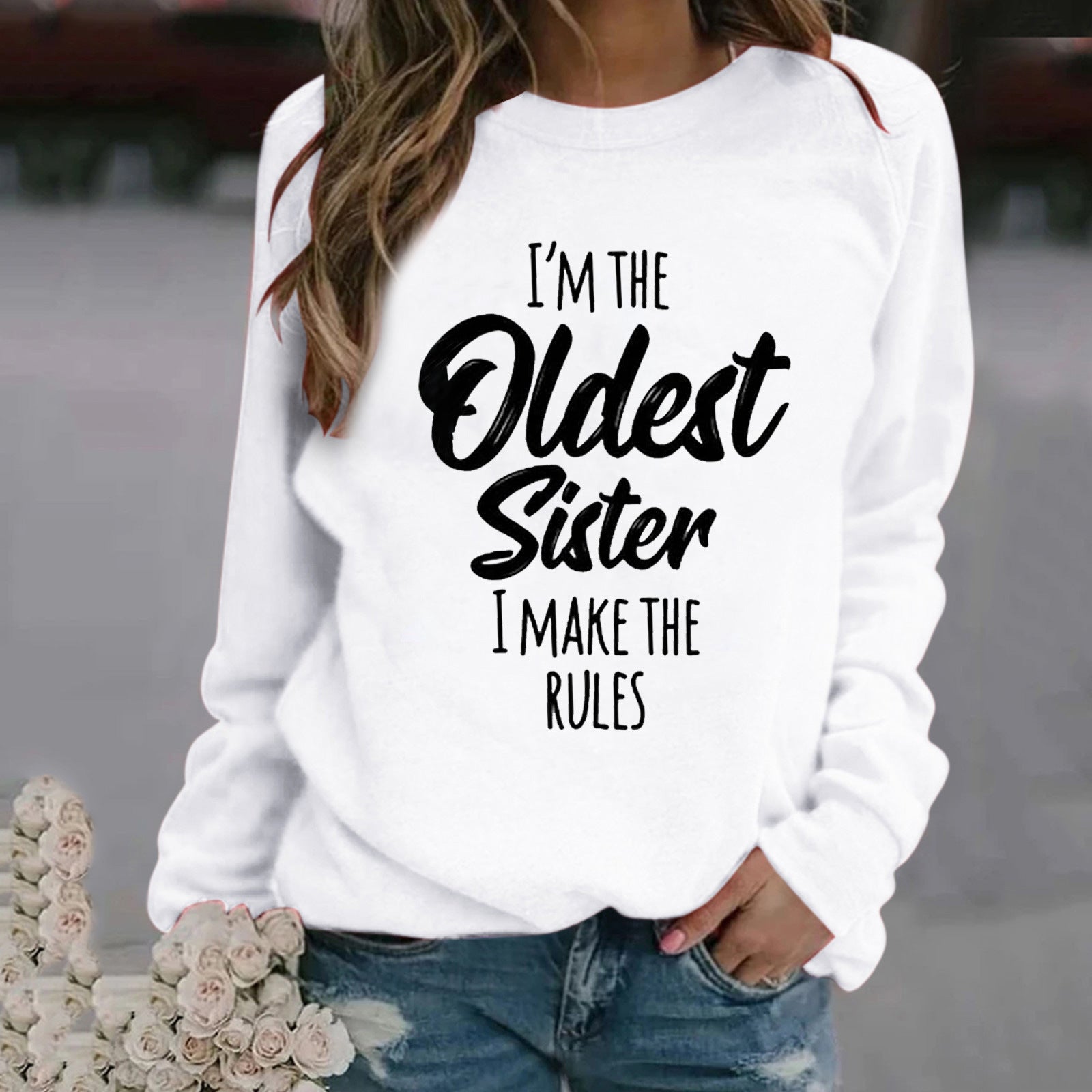 Letter Crew Neck Pullover Long Sleeve Sweater Wish Women's Clothing